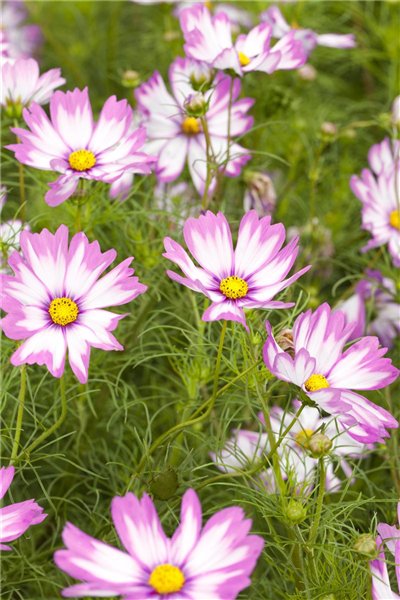 Die Dauerblüher im Sommerbeet bestechen auch in der Vase. Weiß, rosa oder karminrote Blüten mit gelber Mitte sind immer ein Blickfang. Ihr feines, filigranes Laub verleiht der Blume eine sehr zarte, filigrane Wirkung. Trotzdem ist sie robust und hält sich in der Vase sehr lange.