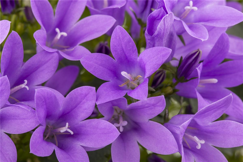 Die Blüten der Glockenblume blühen weiß oder in allen erdenklichen Blau- und Violetttönen. Und dabei machen die Blüten dem Namen der Pflanze alle Ehre. Die Glockenblume besitzt je nach Art glocken-, röhren- oder sternförmige Blüten. Die Blütezeit der Glockenblume liegt zwischen Juni und September. Das macht sie zu einer Pflanze mit einem unschätzbaren Wert für den Garten. Ihren Blüten verdankt die Glockenblume auch ihren botanischen Namen, Campanula. Das bedeutet aus dem Lateinischen übersetzt so viel wie „Glöckchen“. Eine weitere Besonderheit: auch die Anordnung der Blüten ist von Art zu Art unterschiedlich. Mal sind die Blüten als Rispen oder Trauben angeordnet, oft aber auch einzeln.